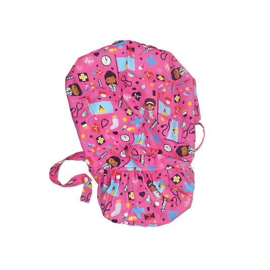 St. Lucian-Themed Satin-Lined Nurse Cap – Pink Heart Edition